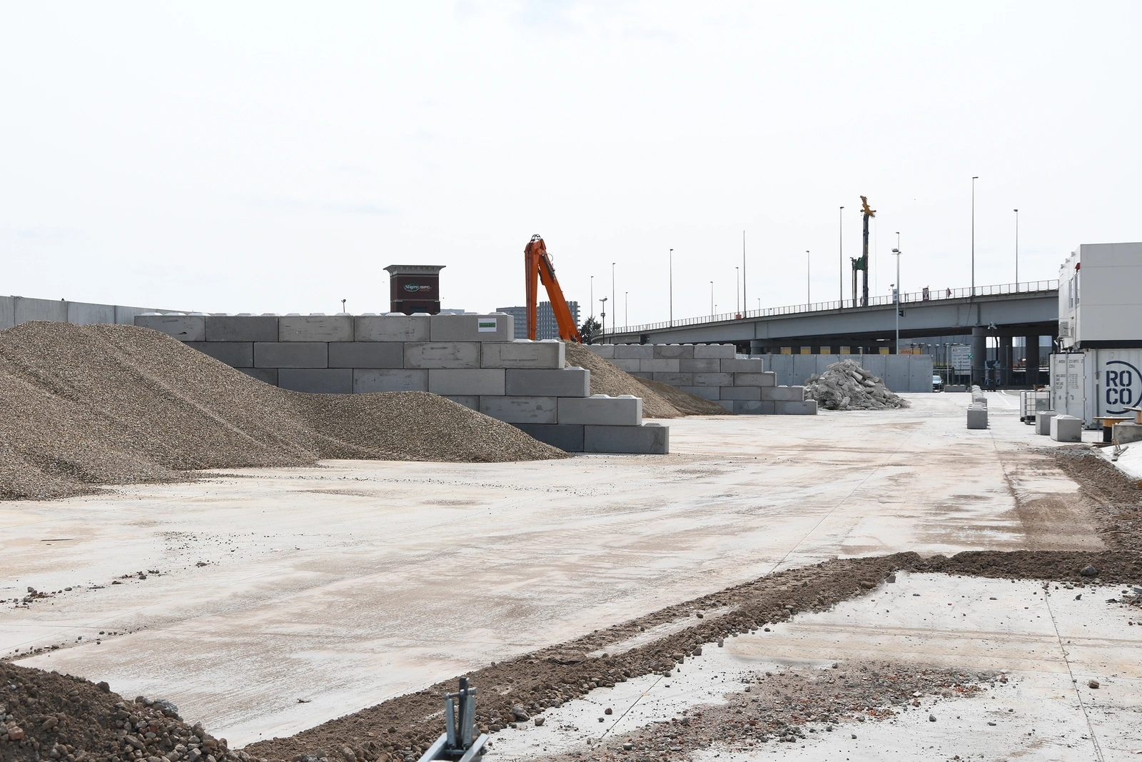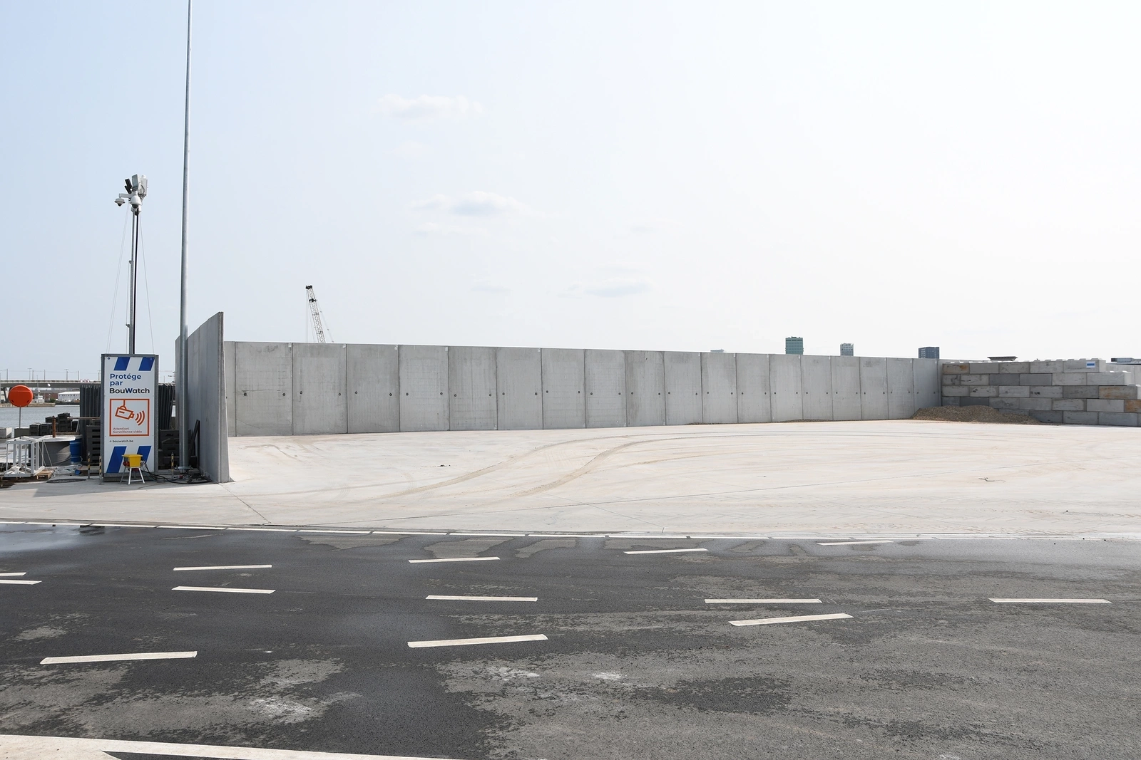 Over the past year, a large, new, temporary concrete plant has risen in the Straatsburg Dock in Antwerp. This plant plays a crucial role in the progress of the Oosterweel works. With 118 ordered L-shaped retaining walls from CBS Beton (CLF10GS), concrete storage bunkers are being created for storing sand and gravel, which are unloaded directly from ships. This makes the Oosterweel construction site increasingly self-sufficient in its material needs.