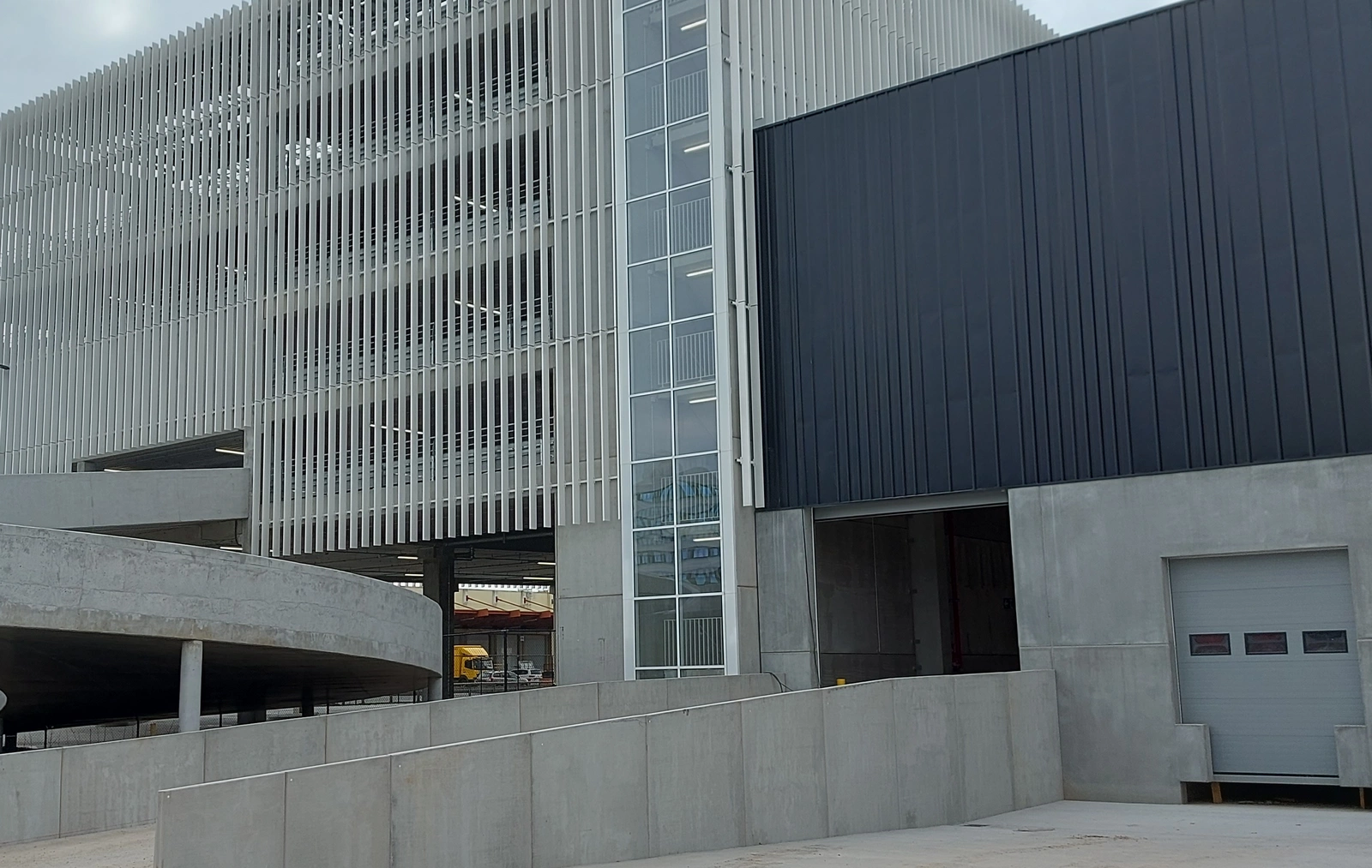 Grâce à nos murs de soutènement obliques, ce parking à Machelen bénéficie non seulement d'une apparence moderne, mais aussi d'une finition durable et stable des entrées et des quais de chargement.